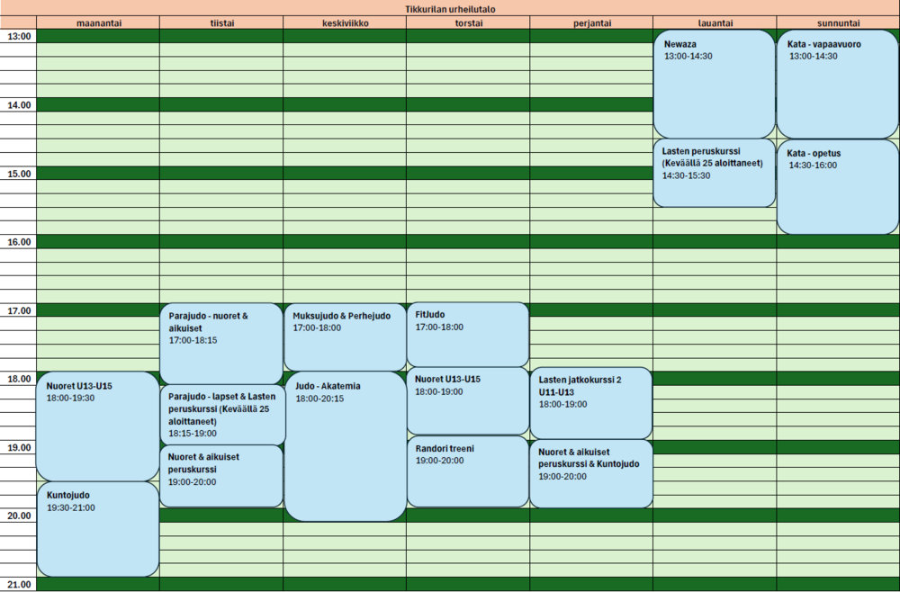 Harjoituskalenteri - Tikkurilan Urheilutalo