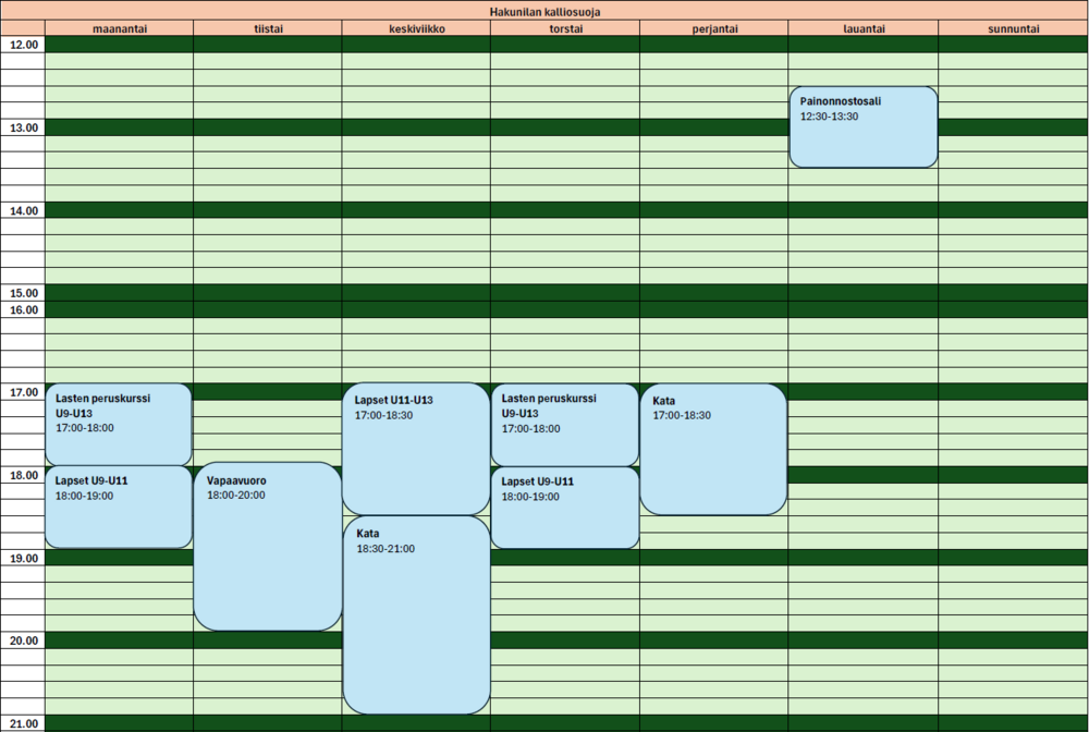 Harjoituskalenteri - Hakunilan kalliosuoja