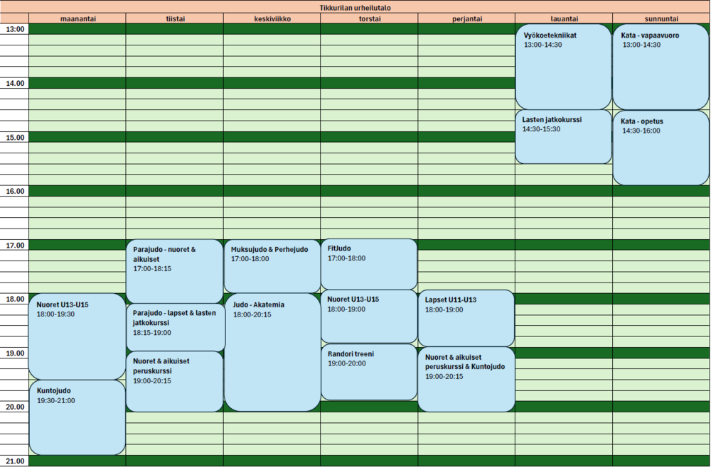 Harjoituskalenteri - Tikkurilan Urheilutalo