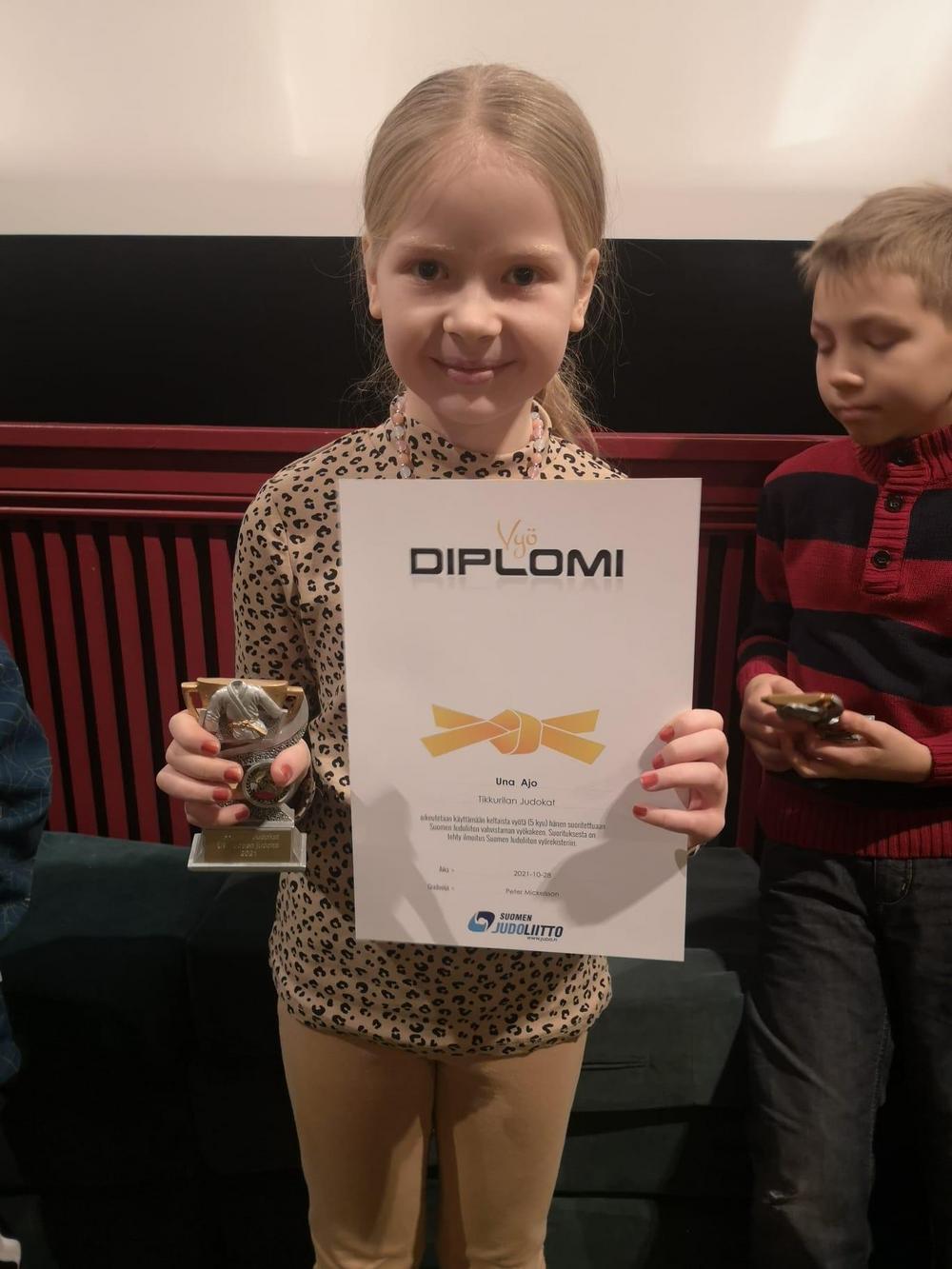 Una: tämä jo hyvin nuorena muksujudoon mukaan tullut harrastaja oli keltaisen vyön kokeeseen tullessaan lokakuussa jo ikäisekseen kokenut judoka. Harjoittelee lähes yhtä aktiivisesti kuin veljensä eikä pelkää ottaa randoria isompien poikien kanssa värivöistenkään ryhmässä.