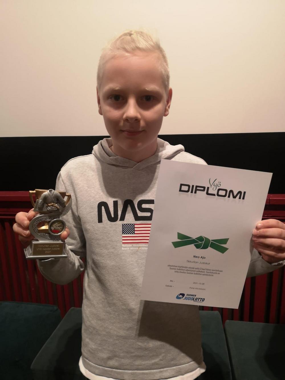 Neo: Tämä ensimmäisen vuoden U13-judoka on harrastanut judoa pitkään ja on aktiivinen harjoittelija. Suoritti vihreän vyön ja aloitti harjoittelun jo liittovalmentajien opissa URHEA:ssa syksyllä ja oli kenties seuran aktiivisin kisakävijä syksyllä. On myös kisoissa seurakavereiden tsemppaaja ja kannustaja, todellinen “joukkuepelaaja” yksilölajissa.